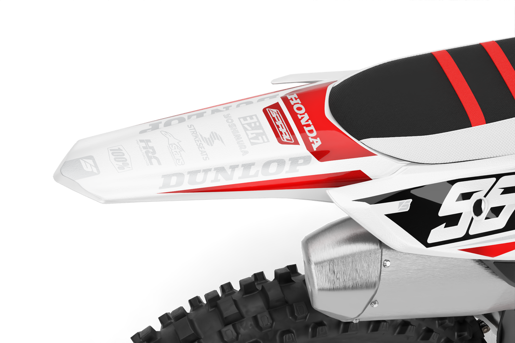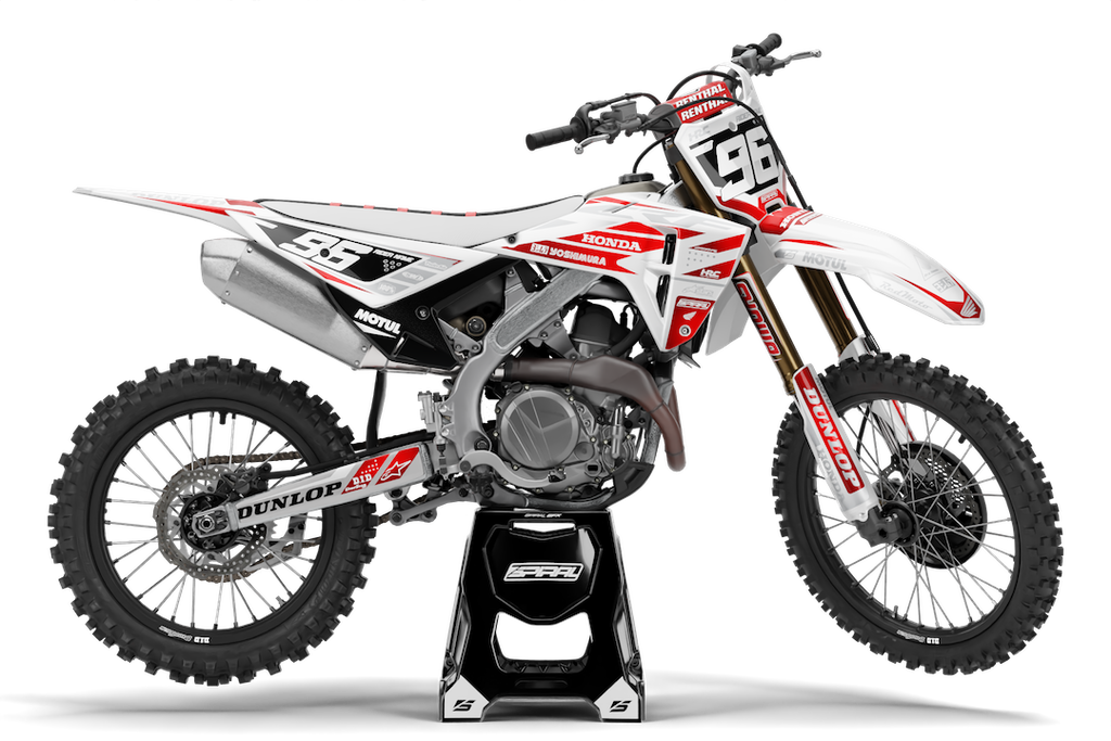 Honda // Racer White Red Motocross Graphics Kit made by SpiralGFX, Licensed by KTM, Husqvarna & Gas Gas and printed on the very best materials with high quality print equipment.