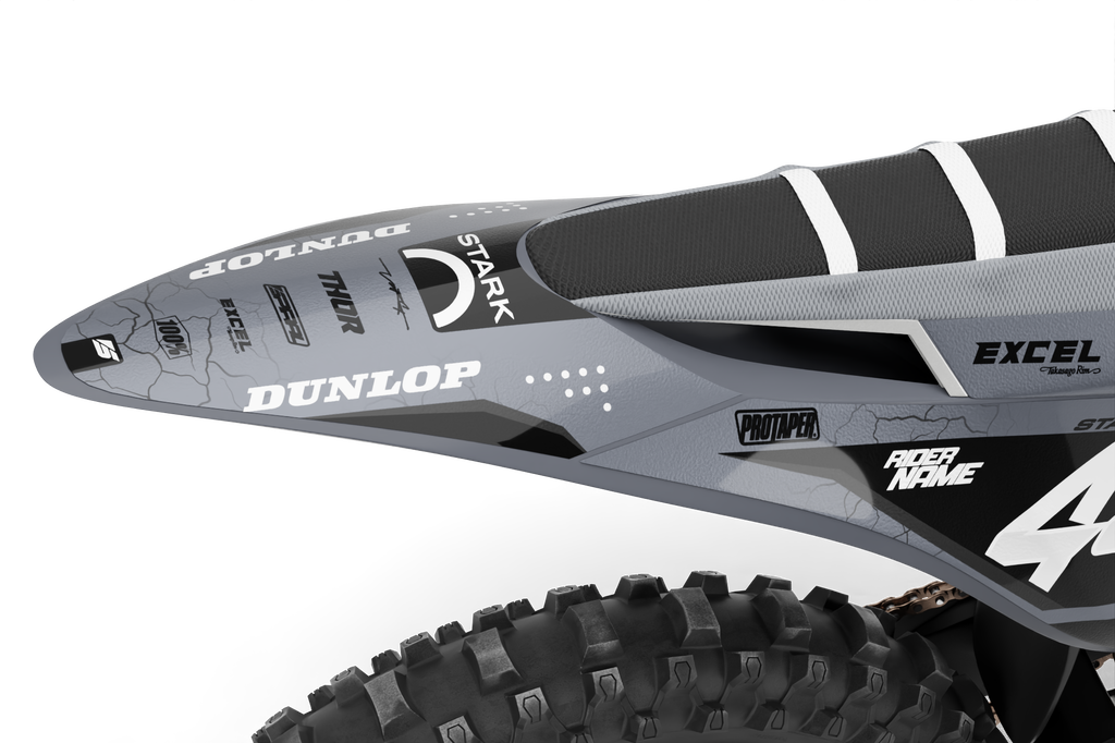 Stark Future // Podium Grey  Motocross Graphics Kit made by SpiralGFX, Licensed by KTM, Husqvarna & Gas Gas and printed on the very best materials with high quality print equipment.